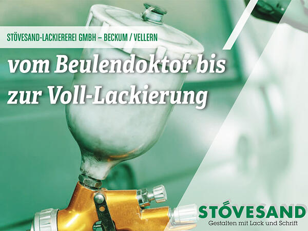 Stövesand ist mehr: Dieser Kernsatz trifft auf unseren Lackierbetrieb in Beckum-Vellern in vielerlei Hinsicht zu. Wir sind fachlich optimal aufgestellt. Unsere Belegschaft bietet Ihnen ein Mehr an Service und Verlässlichkeit. Unsere Zusatzqualifizierungen und normgerechten Arbeitsprozesse garantieren Ihnen hundertprozentig zufriedenstellende Ergebnisse. Unsere unterschiedlichen Fachbereiche schaffen Ihnen Qualitätsarbeit aus einer Hand. Denn wir sind mehr als "nur" ein Lackierbetrieb für PKWs und LKWs.