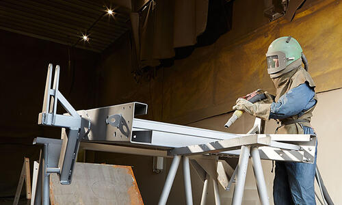 Zum Entzundern, Entrosten, Entlacken, Aufrauhen, Mattieren; wird häufig in Strahlkabinen und Umlaufanlagen eingesetzt.