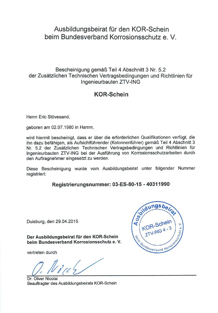 Zertifikat KOR